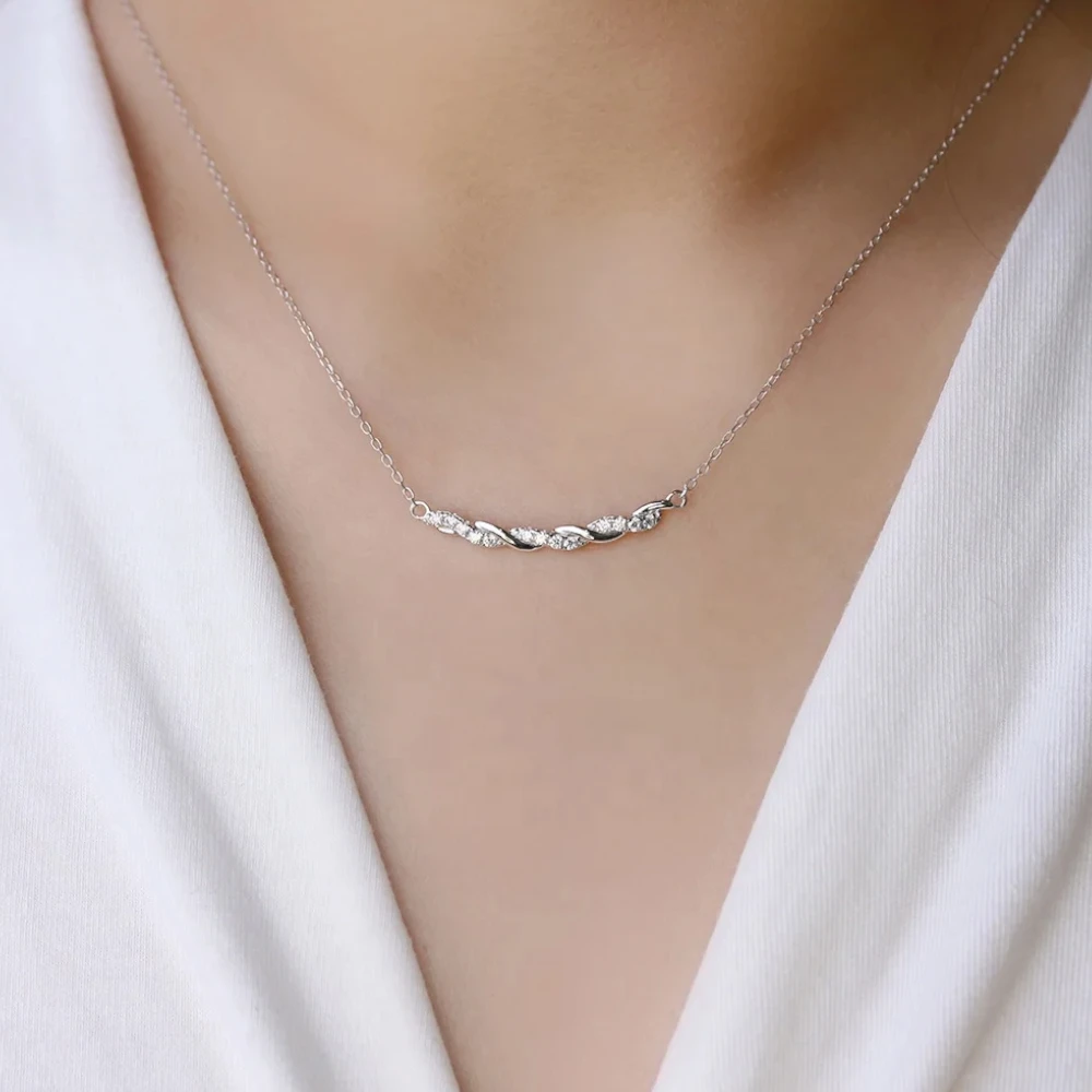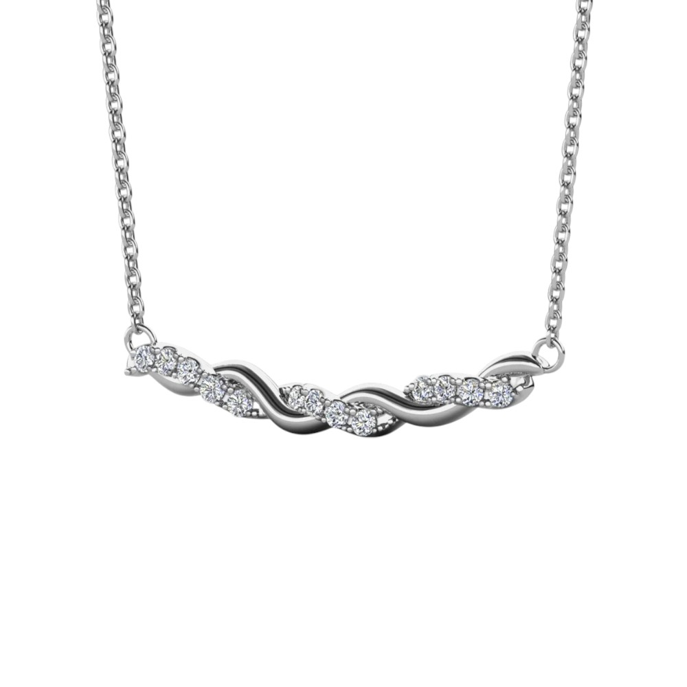 Elegantna srebrna verižica z nežno zasukanim obeskom, okrašenim z bleščečimi 13 moissaniti. Brezčasen kos, ki subtilno poudari ženstvenost in doda pridih elegance vsakemu videzu.